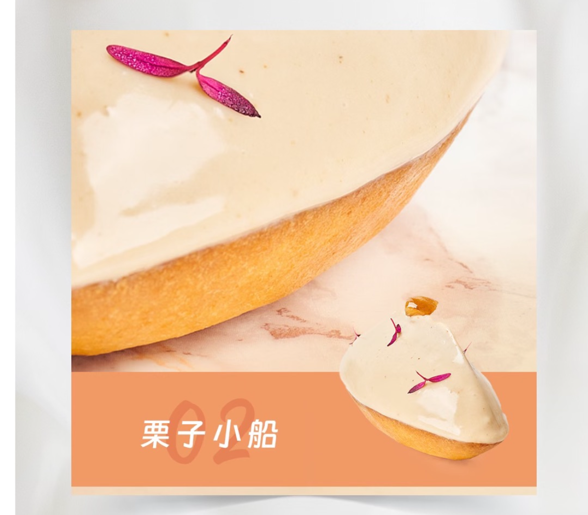 这款以栗子为主调的甜品,慕斯轻盈细腻、入口绵密不腻,栗子醇厚香气层层绽放,搭配底部轻脆饼体,整体风味平衡且富有层次,尽显秋冬温润气息。