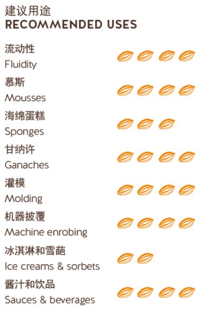 慕斯、 海绵蛋糕、 甘纳许、 制模、 冰淇淋和雪芭、 酱汁和饮品、增加流动性