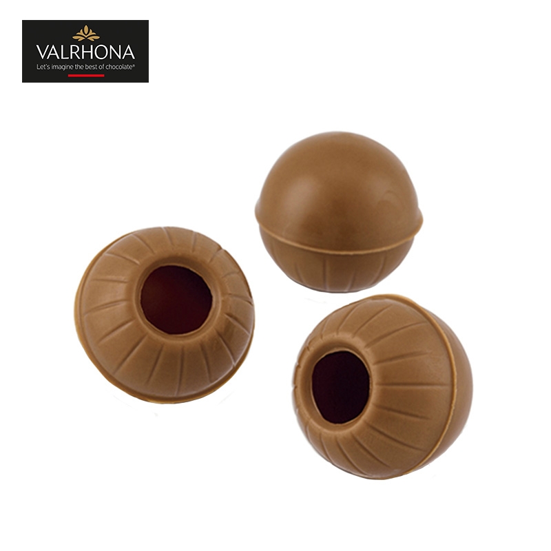 可装填的纯正牛奶巧克力球壳,由法芙娜35%牛奶巧克力制成。
