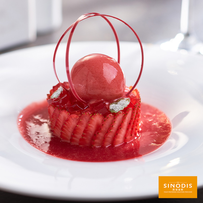 香甜细腻的艾达曼马拉草莓果泥碰撞清凉的薄荷宛如一颗草莓薄荷糖,与丝滑卡仕达酱一同衬托马拉草莓果冻的香甜Q弹并点缀少许黑胡椒增加一丝辛辣的回味
